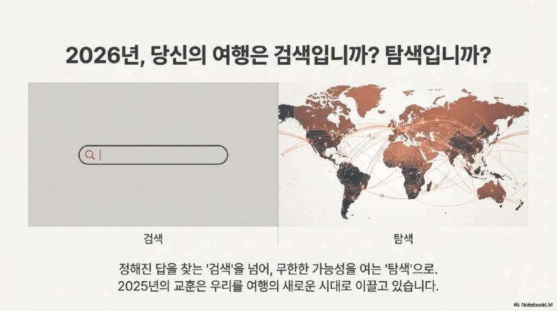 검색말고탐색 블로그의 2025년을 결산하는 의미에서 NotebookLM이 만든 슬라이드 자료입니다. 제가 줄기차게 했던 이야기들을 꽤 잘 요약한 것 같습니다.