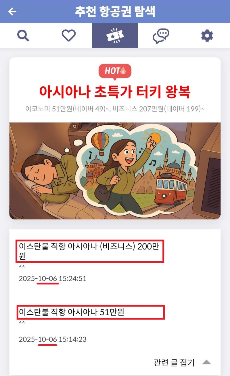 아시아나의 초특가 이스탄불 왕복 항공권을 탐색할 수 있는 링크입니다. 꼭 터키 여행이나 베이스 캠프를 이용한 유럽 여행이 아니어도 좋습니다. 한국 출발로는 비싸지만, 이스탄불 출발로는 충분히 싼 곳, 예를 들면 중동이나 북아프리카 등을 다녀오는 것도 좋은 방법입니다. 비즈니스 항공권만 모아서 보고 싶다면 '클래스를 비즈니스로 설정하고 탐색'하면 됩니다.